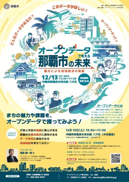 那覇市の観光や地域経済をより良くすることを目的に、オープンデータの活用を視野に入れつつ、参加者間で話し合い、新たなアイデアを生み出していくイベントです。