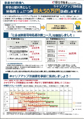 労働者の収入を増加させる取組を行った事業主に、労働者1人につき最大50万円を助成。