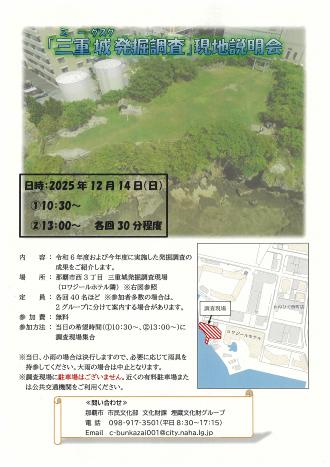 令和6年度および今年度に実施した発掘調査の成果を現地にてご紹介します。那覇の街中に残る遺跡を実際に見てみませんか。
