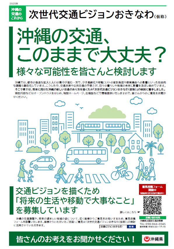 沖縄の交通課題や将来の望ましい地域の姿など、皆さんのご意見をお聞かせください。