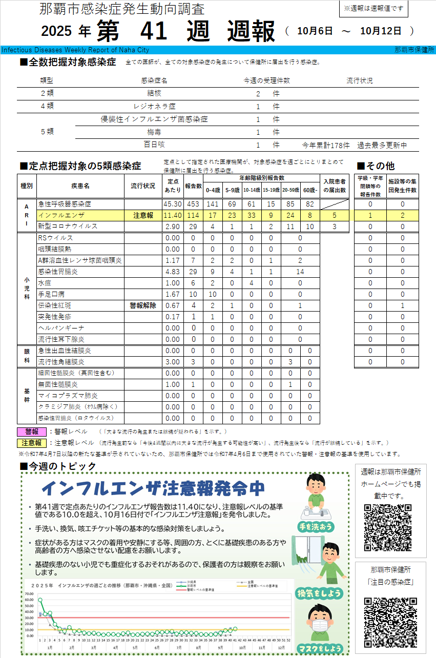 R7(2025)那覇市感染症第41週週報(10月6日~10月12日) (PDF:673KB)