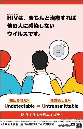 検査を受けて自らの感染を知り、早く治療を始めることで、HIVに感染しても、治療によりウイルス量が検出限界以下になっている状態が6カ月以上続いていれば(Undetectable)、実質的に他者にHIVを感染させることはない(Untransmittable)という概念です。