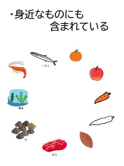 以下のような私たちが普段口にしている食品などに含まれています。
