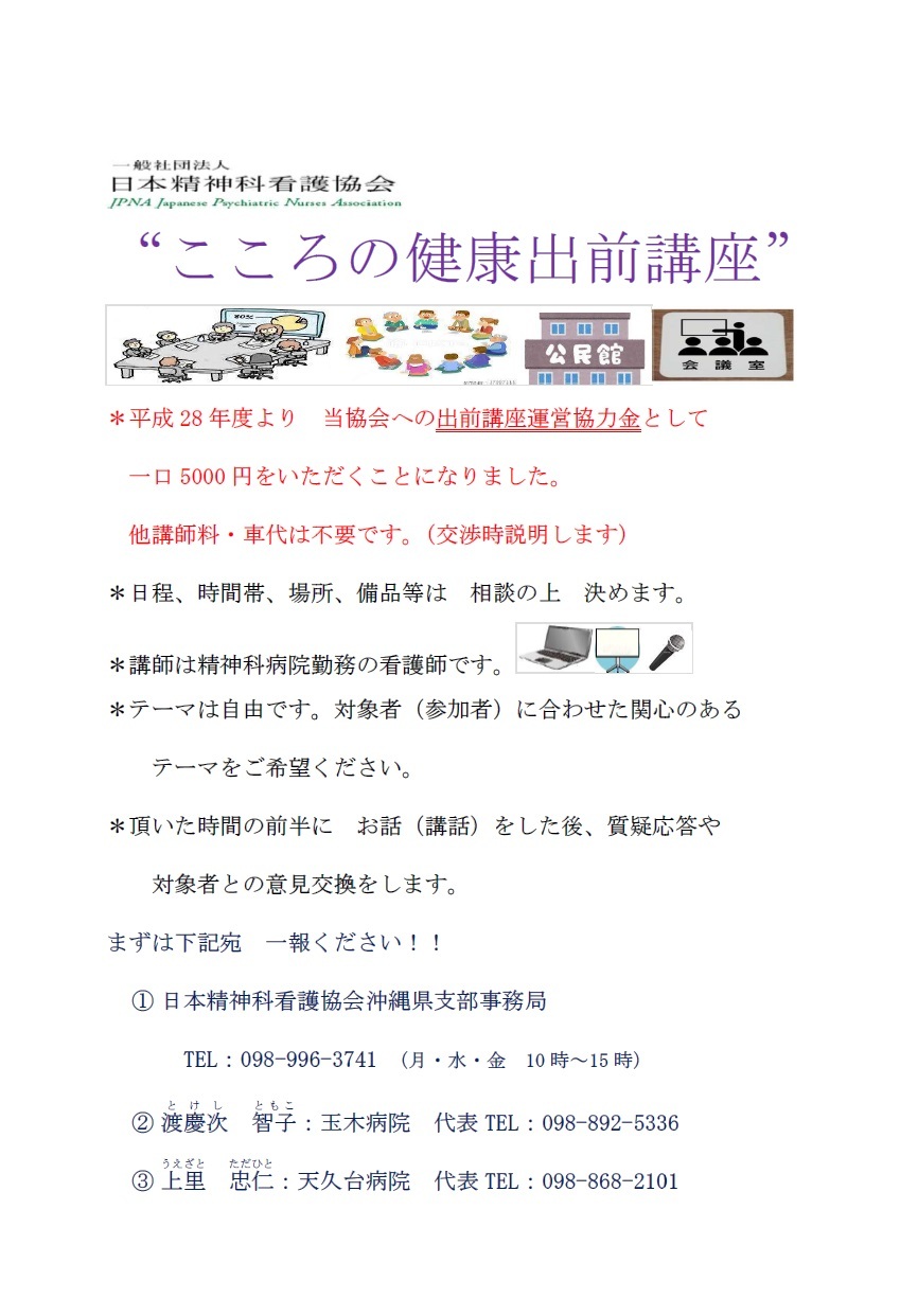 日本精神科看護協会が行っている「こころの健康出前講座」のご案内です。