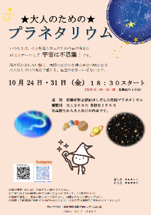 チラシ:10月「大人のためのプラネタリウム」(PDF:516KB)