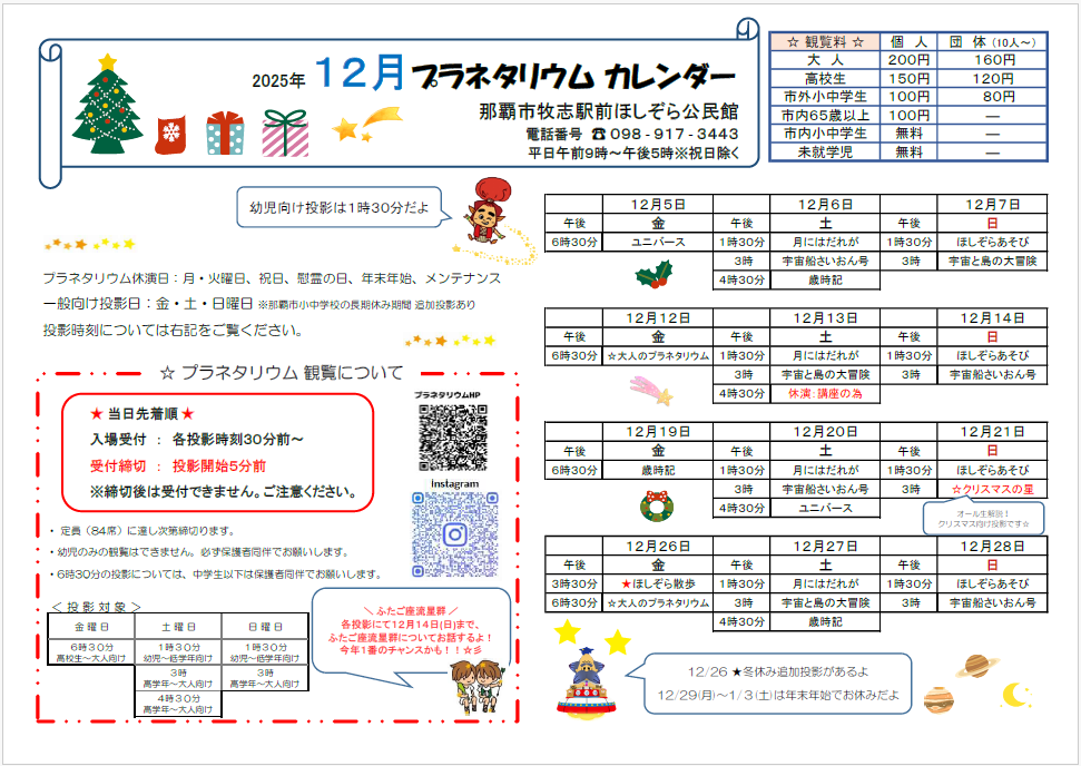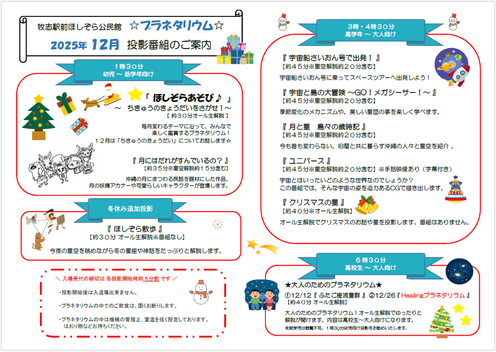 NEW!! 12月プラネタリウム一般向け投影カレンダー