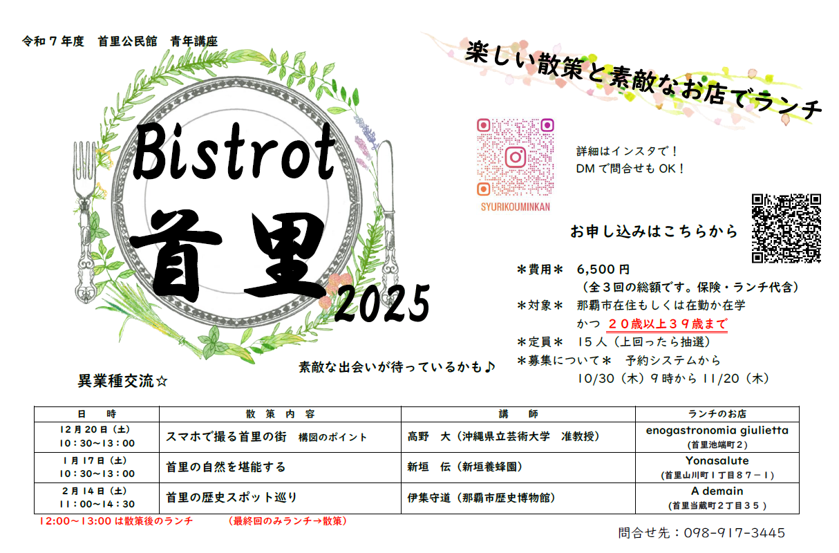 青年講座「Bistrot 首里2025」の受講者募集